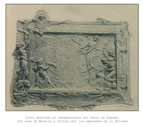 [3] Plancha en relieve regalada al Excmo. Sr. Juan Morales y Serrano, Subgobernador del Banco de España por sus empleados. La Ilustración Artística. Barcelona 19 de marzo de 1902, nº 1.064, pp. 333 y 338