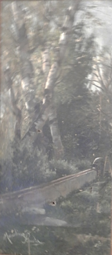 ![]() Paisaje con acequia, óleo s/lienzo, 43 x 20 cm. (c. 1900) |