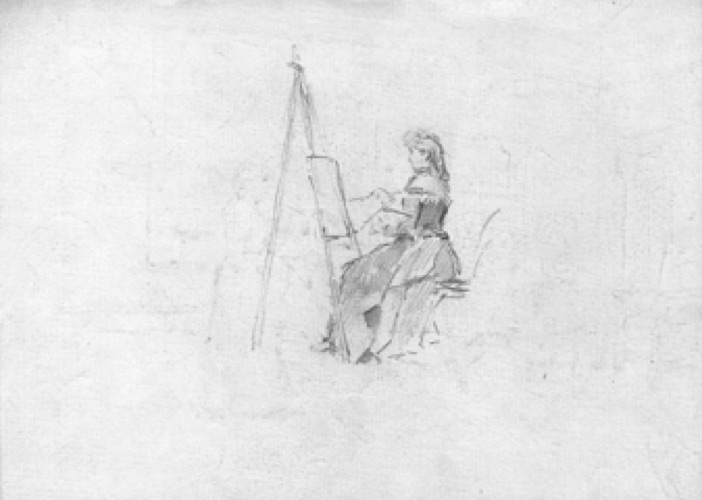 Marcelina Poncela pintando, dibujo del pintor asturiano Félix González-Nuevo (1865-1956) |