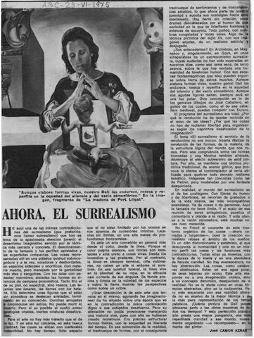 No es Freud el causante de este trastorno orgánico de las cosas —ahora cerradas y turgentes—, pues la creación surrealista rebasa el ámbito de los sueños. Es un afán distorsionante y pesimista, el que descoyunta la normalidad y une en un mismo perfil las cosas y las funciones más contradictorias. Todas ellas ya muertas, con la dureza de lo inerte y en una atmósfera de helada claridad. No hay evanescencia, no hay abstracción. Las cosas, como cadáveres obstinados, flotan en esa agua polar, de unas lejanías sin ocaso. Este arte responde no a una imaginación onirica, sino a un concepto distorsivo, desquiciado de la realidad. No se la elude como en otras fórmulas abstractas, sino se la cadaveriza. Pero este encararse con esa realidad alterada no es elusivo de la mejor técnica y de la más pura representación de los temas plásticos. ¡Cuánta pintura de Dalí puede alinearse junto a tas obras maestras de todos los tiempos! Y esta perfección plástica aún presta una mayor pungencia, una más reperfilada claridad a ese mundo, nuevamente organizado —o recompuesto— en la mente del pintor.