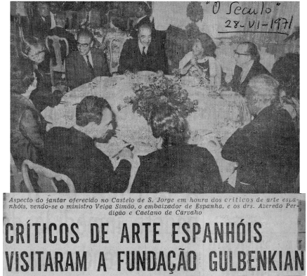 Recorte del diario Ya, con foto de la ponencia inaugural del Simposio Internacional de Arte Actual, Madrid-Cuenca, 1971 Recorte del diario O Século, con foto de la cena ofrecida por la Presidencia de la República Portuguesa a la delegación de AECA en 1971