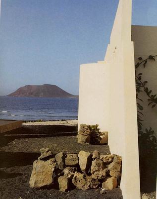 Casa Rodríguez Frutos. Corralejo, Fuerteventura. 1987. Fotografía de época de F. García Barba extraída como cita gráfica de NIMO, Javier y ROMÁN, María del Carmen: “Casa Ruiz Frutos. Corralejo, Fuerteventura, 1987” en BASA, núm. 10. Canarias, Colegio Oficial de Arquitectos de Canarias, 1989 pp.102-107. |