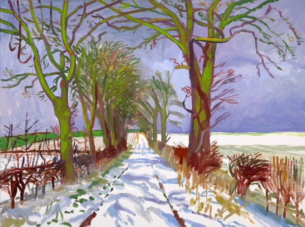La llegada de la primavera en Woldgate,  compuesta por 32 lienzos, es la mayor obra de la exposición, considerada por el propio artista como una de las obras más relevantes, está acompañada por 51 impresiones de obras realizadas con ipad.