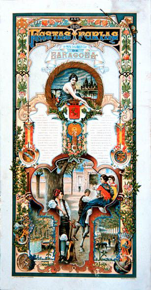 El segundo cartel del que no conocemos el original –que sí presentó esta vez al concurso convocado con motivo de las fiestas del Pilar de 1904–, no ganó el premio pero fue uno de los que se utilizaron para la impresión de varias tarjetas relativas a las fiestas usando los considerados como recomendados; del de Lafuente existe algún ejemplar en el que se sigue apreciando ese juego de encender una vela a lo clásico y otra a la modernidad como ha señalado en alguna ocasión el doctor Manuel García Guatas.
