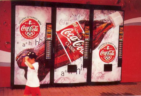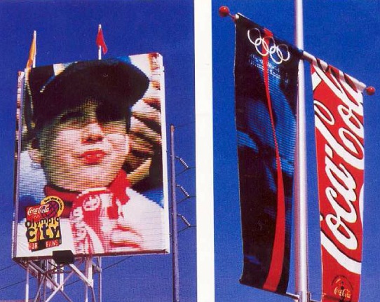 | Imagen corporativa y algunos ejemplos de rediseños de Coca-Cola con motivo del Mundial de Futbol de EE.UU. de 1994. |