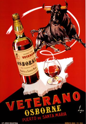 Hemos de retroceder en el tiempo y llegar hasta el año 1956, que es cuando el Grupo Osborne encarga a la agencia de publicidad Azor el diseño de la imagen corporativa de su brandy Veterano, cuya realización es llevada a cabo por el artista Manolo Prieto, quien propone la figura del toro bravo. Las primeras vallas publicitarias colocadas en las carreteras españolas, fueron fabricadas en madera, comenzando a instalarse en noviembre de 1958, para posteriormente en 1961 fabricarse ya definitivamente chapadas en metal, y pasar de medir de 4 a 7 metros de altura. El cambio de material fue debido a que los agentes de degradación medioambientales dañaban la madera. Tras un cambio en la normativa de carteles publicitarios en carretera, las vallas medirán posteriormente 14 metros de altura.
