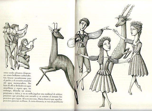 Ilustración de Francisco Meléndez perteneciente a La sortija milagrosa. Cuentos del pastor de Bernardo Monterde, Montena, 1989, p. 17 |