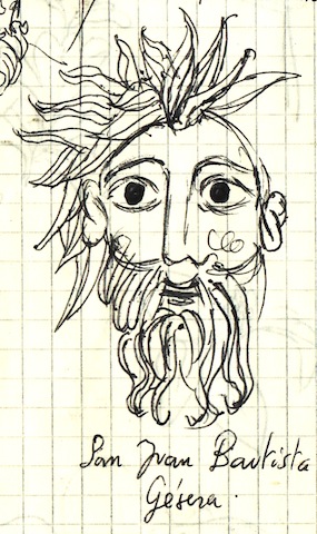 Dibujo sobre la imagen de San Juan Bautista en Gésera perteneciente al cuaderno 1 de Francisco Meléndez. |