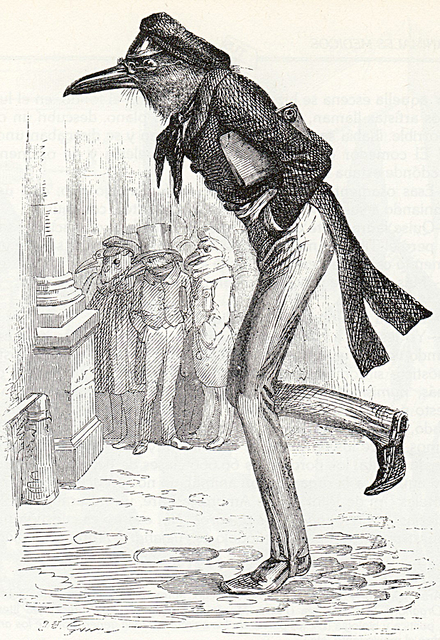 Detalle de la ilustración de Grandville, perteneciente a Vida privada y pública de los animales II, Anaya, 1984, p. 228. |