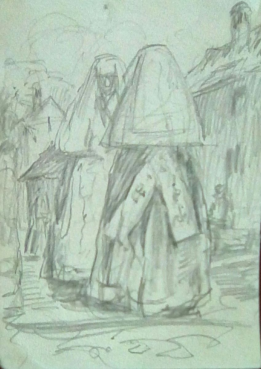 Durante muchos años, este y otros cuadros permanecieron en el domicilio del artista, en la Avenida Central (hoy calle Zumalacárregui) en Zaragoza. Posteriormente, su viuda Xaviera Ubach, dejó el piso y distribuyó la colección entre sus hijas Asunción y Mª Rosa.  Asunción, madre de Pilar Olivares, vivía en la calle Contamina y colgó parte de los cuadros en su casa almacenando la otra parte sin enmarcar en la buhardilla. Allí se encontraban, entre las series descritas, los cuadernos de viajes. Permanecieron allí hasta el año 1960, cuando el domicilio fue vendido y la buhardilla vaciada. Los padres de Pilar Olivares se trasladaron, y cuenta Pilar que, ayudados por unos buenos amigos que tenían un coche 600 descapotable, guardaron todo en un trastero hasta el año 1965, tiempo en que pudo llevarse las obras a su nuevo domicilio. Entonces enmarcaron, restauraron y guardaron cuidadosamente las obras sin enmarcar. Pero los cuadernos de dibujos llamaron particularmente la atención de Belén Gómez Navarro, sobrina de Pilar Olivares, quien y se puso en contacto con el catedrático de la Universidad de Zaragoza Jesús Pedro Lorente, director de AACADigital. En esta revista hemos querido dar a conocer esas obras como homenaje a quienes las conservaron y advirtieron en ellas un valor de interés general. Un legado familiar, pero también un testimonio del arte de la primera mitad del siglo XX con el que reivindicamos la memoria del extraordinario y polifacético artista que fue Francisco Cidón.