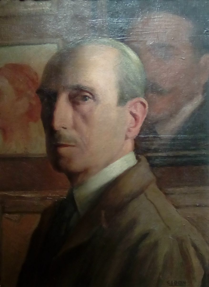La obra de Cidón sobre papel es un testimonio representativo de su destreza para el dibujo y las artes gráficas que le hicieron merecedor de gran prestigio en ese ámbito, pero no hay que olvidar su faceta de pintor de cuadros al óleo. Muestra de de ello es el autorretrato del año 1934 que conserva la familia en su colección particular. El artista se retrata de medio perfil, fijando sus ojos en el espectador y manteniendo una actitud serena. El fondo es una pared de la que cuelgan otras obras, una sanguina y otro retrato pintado. Los volúmenes y los juegos de luz y sombra equilibran la composición en la que ha quedado inmortalizado, con algunas de sus obras favoritas, que nos dan idea de la importancia que tenían para él los dibujos y carteles, pero también sus cuadros al óleo. Esa es otra faceta de su producción que está también representada en la colección de sus herederos y en buena medida sigue inédita.