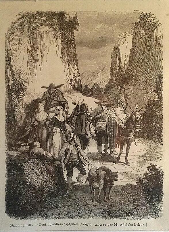 Esta vida “exótica” estaba personificada en ciertos prototipos del mítico solar ibérico que proliferaban en la frontera al tratarse de un lugar de paso y de intercambios de personas, mercancías y, por supuesto, de experiencias. Casos de pintores más o menos ilustres como el Antoine-Ignace Melling (Karlsruge (Alemania), 1763-¿1831), Adolphe Leleux (Paris, 1812-Paris, 1891), Camille Roqueplan (1803-1855), Eugéne Delacroix (1798-1863), Eugéne Devèria (1805-1865), Octave Pengüilly-L´Haridon (Paris, 1811-1870), Pierre-Luc-Charles Cicéri (1782-1868), Charles Landelle (1821-1908), Ernest Guillaume (1831—1870), Gustave Doré (Estrasburgo,1832-París,1883), Rosa Bonheur (1822-1899, acompañando a su amante Nathalie Micas), etc, lo demuestran. Todos ellos, visitantes ocasionales del espacio fronterizo, se interesaron en un momento dado por el personaje mítico del “Contrabandista” como paradigma de la vibrante y colorista vida popular altoaragonesa, dentro del interés general de focalizar su atención en la singularidad de estos habitantes de los Pirineos tan fuera de lo común a los que Marguerite Gaston denomina en su gran estudio de referencia sobre iconografía pirenaica “les heros montagnards” (Héroes montañeses), caracterizados por sus típicas vestimentas y unos modos de vida puros y ancestrales. (GASTON, 1975: 134)