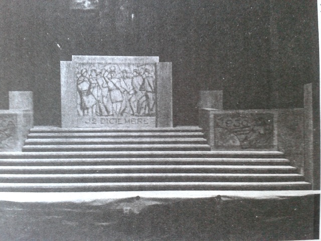Fig. 1 Grabado de Ramón Acín del Mausoleo de Manuel Abad y sus catorce compañeros republicanos.