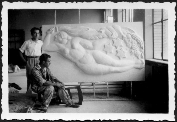Fig. 6 Relieves definitivos del Monumento a los Mártires de la Libertad de Jaca donde vemos figuras femeninas atléticas recostadas. Imagen tomada del artículo de Nicolás Sesma “Hasta más allá de la muerte. El proceso de responsabilidades políticas contra Ramón Acín y Conchita Monrás en la Huesca de la Guerra Civil” en la revista Rolde.