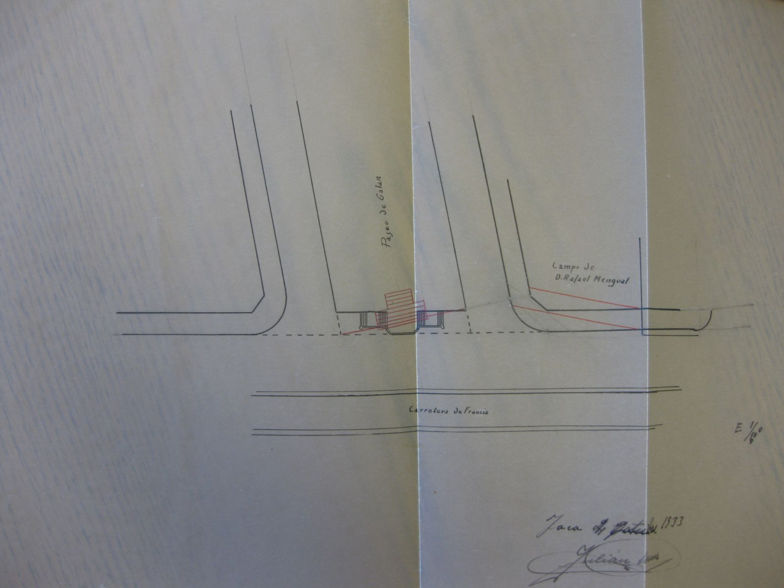 Fig. 7 Plano de la modificación de la alineación  de las fincas “en el trozo que ocupa el paseo” y  la finca de D. Rafael Mengual.