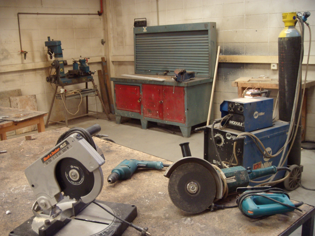 Dado el carácter público de la actividad que desarrolla, las construcciones han de cumplir la Norma Básica de Edificación (NBE/CPI 96, R.D. 2177/96), en la que también se contemplan las condiciones particulares para uso docente. Tal vez haya edificios antiguos no adaptados y en este caso, es el arquitecto quien tendrá la facultad y conocimientos. No obstante, conviene que este profesional se muestre permeable a las necesidades y sugerencias de los docentes que finalmente ocuparán el lugar. Algunos requerimientos pueden tener que ver con la luz (ambiental o puntos de luz específicos), con zonas húmedas, con la siempre difícil amortiguación de ruido, con el ancho de vías de circulación y puertas (incluyendo la dirección de su abatimiento), con lugares para unas tutorías más silenciosas, con la altura de la techumbre o el tipo de suelo (que admita golpes y usura continuada), con una amortiguación térmica flexible (en largos períodos de calor, una actividad física produce stress térmico), con la ventilación (forzada, especialmente si se trabaja con químicos), etc. Si nos reunimos varios docentes, podemos seguir formulando preguntas que prevean posibles usos, en aras de una mayor eficiencia del espacio: ¿Puede afectar el tiempo atmosférico en el buen desarrollo de las prácticas? ¿Hay zonas húmedas? ¿Se contempla el uso de electricidad a su alrededor? Es importante en la distribución de los espacios, que se contemple la ley: el R.D. 486/97 y la Norma Básica de Edificación (R.D. 2177/96 art.6.1), donde se especifican la densidad de ocupación de 1 persona cada 1’5 m2, que sube a 5 m2 en locales docentes diferentes a las aulas, como laboratorios o talleres de escultura en nuestro caso. Un lugar densamente ocupado puede implicar confusión visual, alienación individual y dificultades de atención. El taller de prácticas exige además una movilidad constante al profesor.