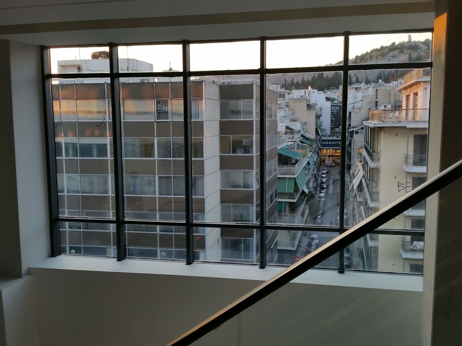 A medida que subes por las escaleras mecánicas hacia el tejado del edificio te atraes por el espectáculo del tejido urbano ateniense que se desarrolla en el exterior, presidido por la omnipresente Acrópolis y que se deja ver desde el interior a través de los grandes ventanales que en otras épocas dejaban ver el proceso de producción de cerveza en el mismo interior. Se establece una especie de diálogo entre visitante y paseante en el que no está claro quién es la obra y quién el espectador. Cuando llegas al último piso, frente al ventanal que se encuentra delante de ti, con el inevitable Partenón marcando la distancia en el fondo, solo entonces te enteras de que has ido formando parte de lo expuesto para los transeúntes…