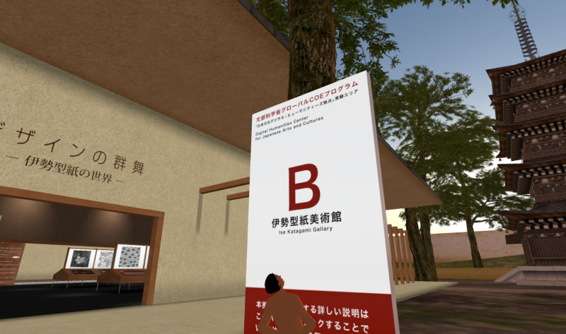 Figura 3. Captura de la entrada de la galería virtual “Digital Humanities Center for Japanese Arts and Cultures” en Second Life. Destinación slurl: http://slurl.com/secondlife/rits%20gcoe%20jdh/167/189/22