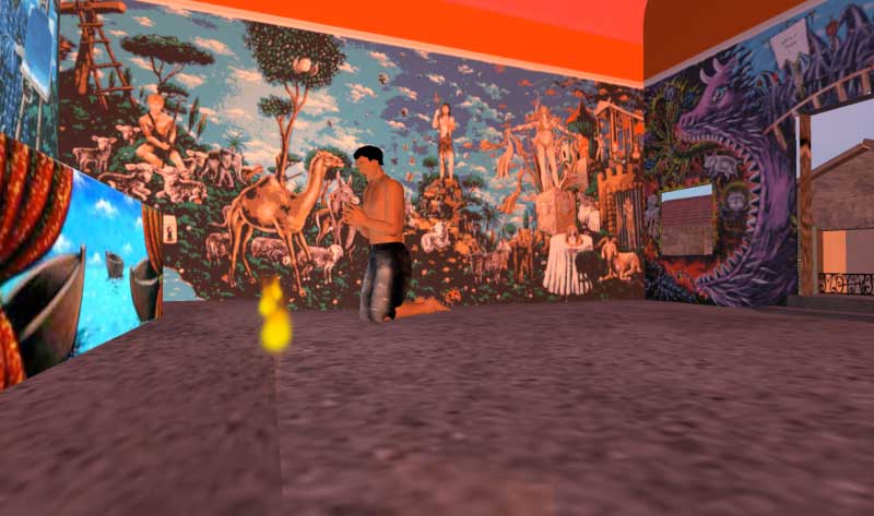 De esta forma, abordar el espacio virtual significa comprender el radio de acción de los avatares que lo transitan, lo sufren y/o lo utilizan para construir su identidad. Así, en este contexto, no es en vano que muchas instituciones, organizaciones e universidades han intensificado sus esfuerzos para mantener su presencia en los metaversos, intentando profundizar en las nuevas complicidades entre lo físico y lo inmaterial, o entre lo que representan y lo que presentan (Serra, 2012). Sin embargo, en esta supuesta comunión no siempre podemos hablar de un buen aprovechamiento de los recursos virtuales; a veces sólo será un “plagio-espejo” de lo que pudiera estar en una web, restando información, proyección e conocimiento en su traducción “virtual”. Precisamente, refiriéndome ha esta aparente involución de cómo utilizar el entorno virtual, enumeraré tres factores que denotan cierta predisposición a una “mortificación” de lo real: la copia arquitectónica según leyes gravitatorias, la indexación de los contenidos y la no-contemplación del usuario en el diseño objetual. Es decir, limitarse a construir sobre un espacio sin escapar de los condicionantes del mundo real, rebajar la experiencia exploratoria a un listado de categorías textuales y menospreciar la experiencia del usuario. Estas son las principales características de un mundo virtual vacío, en el que sus aportaciones no son otras que remitirnos a un estadio empobrecido y  nostálgico en una lectura postmoderna. Por esta razón, mientras consumimos espacio-tiempo digital, nos es apropiada una lectura contributiva de este fenómeno en tanto espacio público que nos pertenece, al menos en nuestra navegación errática. Si observamos la etiquetas de las regiones en Second Life que incorporan la palabra clave “art”, comprobamos como se reúnen un conjunto de “pseudogalerías” que no traspasan la representación fantasmal de un cuadro (no importa el autor) mapeado sobre un polígono; incluso en su versión más excitante, nos recrean un parque temático basado en el estudio de un artista o antiguas ruinas de una civilización ya conocida. No hay más. No hay más si no es que apelemos a un sentido semiótico del signo y del lenguaje que dejaremos para otra ocasión. Second Life plantea nuevos retos creativos a sus usuarios, pero la naturaleza efímera de sus creaciones conducen al olvido de un mundo que avanza más rápido que su aprendizaje, en el que lo que persiste tiene un coste, real.