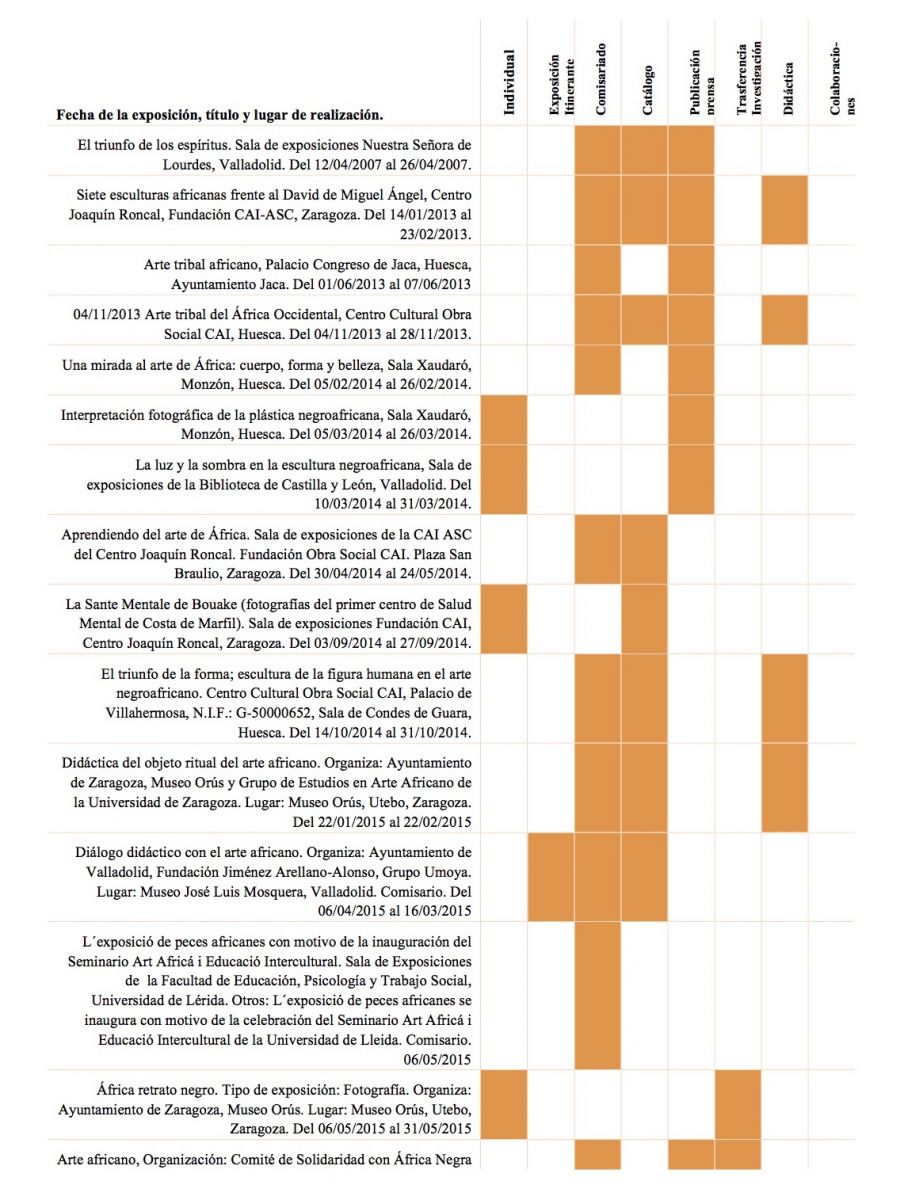Esta docena de exposiciones celebradas en diversas localidades ilustran el esfuerzo realizado por presentar de una manera didáctica piezas de arte africanas a la comunidad universitaria y en general a la sociedad española.