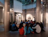 Figura 1. Visita escolar en la exposición Siete esculturas africanas frente al David de Miguel Ángel en el Centro Joaquín Roncal de Zaragoza en 2013.