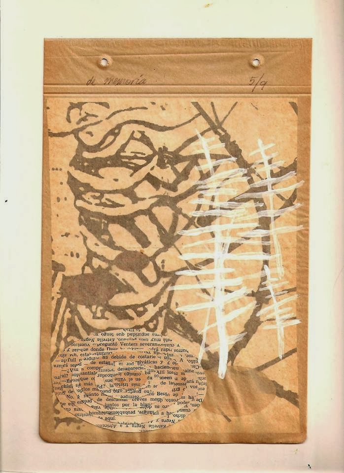 Esta idea de la individualización de cada uno de los fractales que conforman el terror, es enfatizada a uno de los lados de este “mural-instalación” al animar una serie de estos rostros con unos largos tallos vegetales que reviven la idea de regeneración natural que el Germán Díez ha trabajado en su obra inmediatamente anterior y que aquí presenta definitivamente como una esperanza futura. La obra gráfica realza esta idea de individualidad de los materiales empleados y de las masas, al tener como protagonista la huella directa de una mano como firma primigenia del individuo.