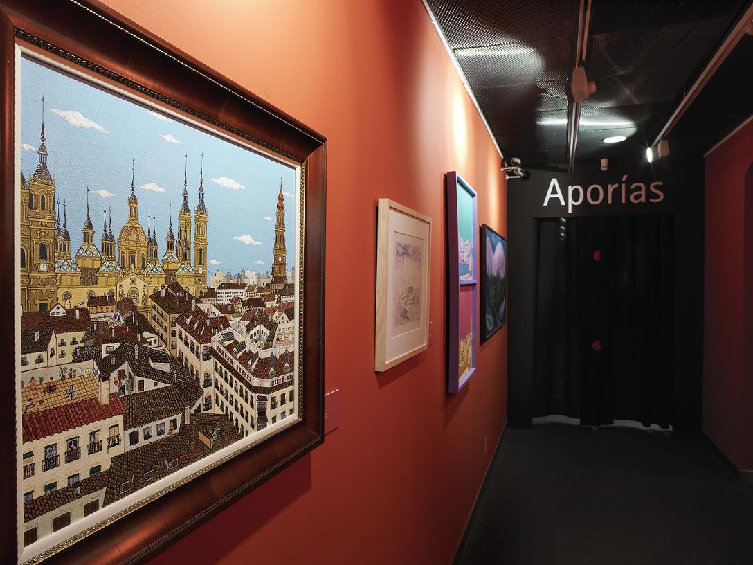 Como queremos poner de relieve, la elección de un edificio que es parte inseparable del devenir reciente de Zaragoza, para albergar parte de un conjunto de exhibiciones consagrado precisamente a este paseo artístico por la historia, se resalta como un delicado acierto. La construcción ofrece un decorado de excepción para un conjunto de obras que, a su vez, aportan a la constancia de la construcción una elegante y novedosa vestimenta. Obra plástica y obra arquitectónica se retroalimentan, dialogan, y una señala a la otra.