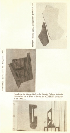 Cabe destacar que las imágenes reproducidas en el artículo son: forma-color de Herrera (collage sobre plástico, 1961), Construcción 30 de Gutiérrez (fotograma, 1962), Exposición del Grupo Madí en la Pequeña Galería de Radio Universidad de la Plata en la cual se observa una pintura de Scopelliti y una escultura de Sabelli, Pintura Madí de Rothfuss (1952) y Escultura hidráulica de Kosice (1961).