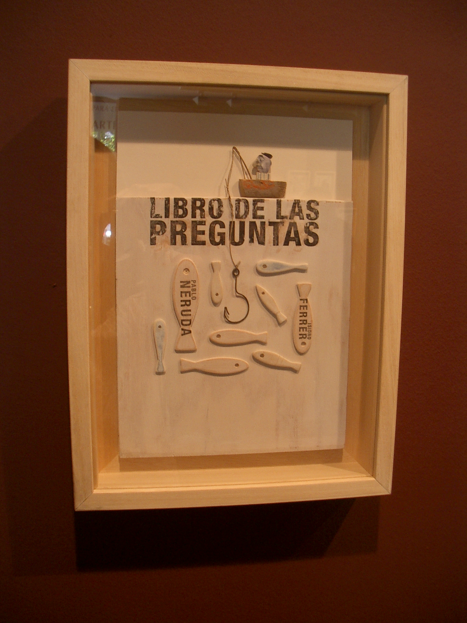 Caja Madrid, en su espacio para el arte de Zaragoza exhibe, por vez primera y hasta el 19 de octubre, las obras que Ferrer ideó para ilustrar la publicación de Media Vaca. Resulta curioso y muy divertido ver como un poema toma corporeidad, saltando de las páginas de un libro, de una cuartilla e incluso de las servilletas de papel de que se servía Don Pablo en ocasiones, a la tercera dimensión. Las palabras, las preguntas, se hacen tangibles y ocupan un espacio físico que de inmediato se traslada a nuestro ánimo para buscar respuesta, nuestra propia respuesta. Y es que Ferrer no resuelve los enigmas de Neruda con sus obras-objetos, si acaso los rodea y nos lanza el guante con otra nueva pregunta.
