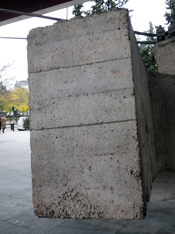 4.1. Deterioro por empleo de cementos de escasa durabilidad. En este caso, puede ponerse como ejemplo el cemento aluminoso. Estos materiales presentan gran rapidez de fraguado y alta resistencia, aunque limitada en el tiempo (recuérdese la escultura Homenaje a Jorge Guillén I, de Chillida, ya mencionada).