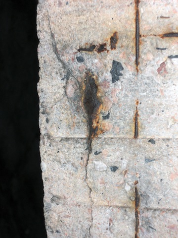 Sin embargo, la corrosión de las armaduras metálicas es uno de los tipos de deterioro más frecuentes en el hormigón y puede ocasionar graves daños a la obra. Esta patología se manifiesta mediante el desprendimiento del hormigón de una forma puntual o longitudinal y la aparición de manchas parduzcas en la zona afectada [figs. 3 y 4].