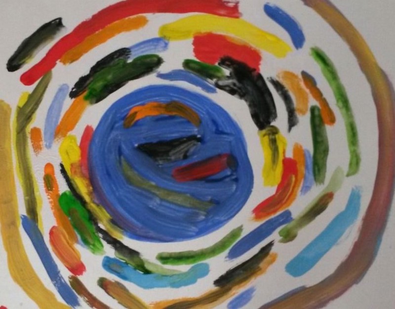 Una vez los asistentes hubieron experimentado con la arena se comenzó a trabajar con pinturas fluorescentes que pudieron ser observadas con el ciclo de luz que instalado en la Sala donde se encuentra a obra de Orús, que les permitía observar sus trabajos sucesivamente con luz blanca y luz negra, pudiendo percibir la viveza de los colores una vez se activaba el ciclo de luz negra.