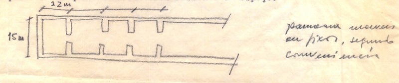 Desenho de Sérvulo Esmeraldo para o Relatório, enviado de Paris, na data de 8 de setembro de 1961.  Panneaux móveis ou fixos, segundo conveniência.