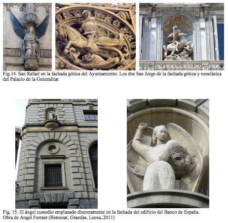 En los años 1940, Eugeni d’Ors (D’Ors, 1945)que había vivido en la avenida del Portal del Ángel de Barcelona, reclamaba que la construcción de la nueva sede del Banco de España en Barcelona, contemplara rescatar el ángel custodio y protector que había lucido en la puerta de entrada de la ciudad. A esta petición llegó a sumarse Oriol Bohigas, por entonces un joven arquitecto (Bohigas, 1947).