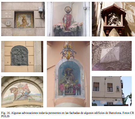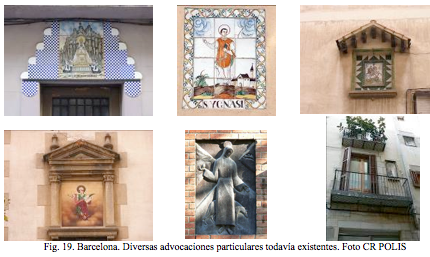 En cualquier caso, el tema de la presencia objetual (la efigie) de un patrón no es tema baladí. Así, la Caja de Pensiones de Barcelona, desarrolló todo un programa de construcción de vivienda, muchas veces vinculado con el despliegue de la legislación española de Casas Baratas y Casas Bonificables, en el que los distintos edificios se ponían bajo la advocación de un santo protector.