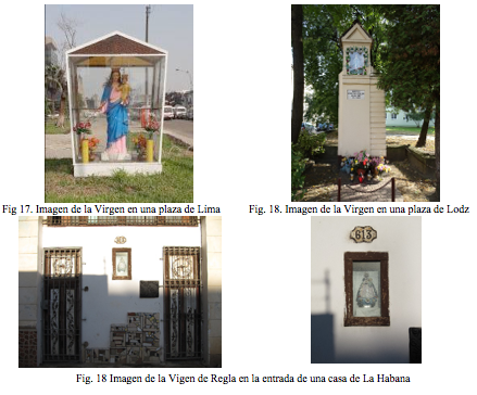 Si en una ciudad como Barcelona, por lo general las advocaciones ocupan el plano vertical del espacio público, en otras ciudades y latitudes, estas representaciones de los protectores del territorio tienden a estar ubicadas en el plano horizontal, ocupando un espacio.