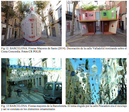 Que una actividad o celebración atraiga a las masas, a la mayoría de la población, e incluso se convierta en un reclamo turístico de la ciudad, no significa que, en sus orígenes podamos considerar tal actividad como « surgida del pueblo », de raíz popular. Como ejemplo, dos actividades que tienen un gran impacto popular en dos ciudades. Actividades que, además, representar un esfuerzo artístico importante para proporcionar color e impacto a la propia actividad, transformando totalmente las características del espacio público. Escenografías y coreografías visuales, sonoras, pirotécnicas, etc. generan una « lectura » distinta de espacios públicos de la ciudad.