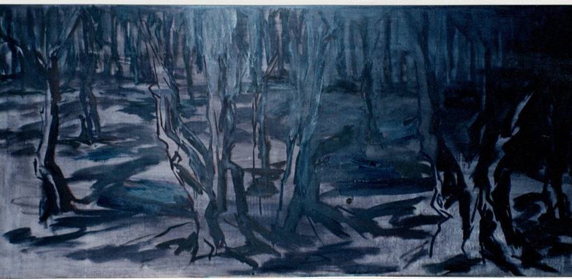 Es una forma de esa polisemia la que, como materia “sin cierre, sin marco”, se pretende sustantivar y analizar. En las dimensiones de los dos lienzos hay que ver no sólo los árboles en su perspectiva clásica sino en su magnitud, porque no los puedes abarcar. Es por ello que su autora tiene que elegir un punto y a partir de él materializarlo plásticamente. De ahí que como espacio vivido la pintora tenga un sinfín de sentimientos, que al trasladarlos siente que está dentro de ese bosque. Interactúa en la realidad montada en ese soporte dentro de su línea envolvente. Toma el espacio natural no desde una militancia ecologista, pero sí cercana a esas ideas. Se pueden sentir las vibraciones anímicas de la pintora en su bosque, con las piernas y los brazos abiertos, y conseguida la obra que se convirtió, más que en una tarea estética en una necesidad de ser y de existir dentro de ella.