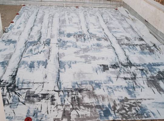 Dolores Balsalobre. Decorado blanco, loneta, pintura acrílica, 10 metros por 7 metros  Dolores Balsalobre. Decorado negro Loneta, pintura acrílica, 10 metros por 7 metros