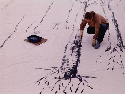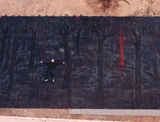 La idea parte de una reflexión acerca de las propuestas de interactuación con o en el paisaje, que la pintora, aunque no las haya presentado públicamente, conoce y expresa. Sea cual sea su destino, figura, cuerpo visible como reflejo de identidad con los árboles inundados. Imagen de unos caminos y trayectorias que expresan lo sentido, frente a otras ideas como tener en cuenta el lugar pensado para tal obra. De forma que lo que determina el material y las dimensiones se debe al encargo que Philippe Trehet, director y escenógrafo de la Compañía de Danza Le Galet Gris, Le Havre (Francia), hace a la pintora a finales del año 2000. Dentro de ese contexto interesa conocer la fuente de inspiración del escenógrafo para su creación escénica de danza, titulada Vitalités obscures[11] es en concreto la esencia de lo que le dice este verso: