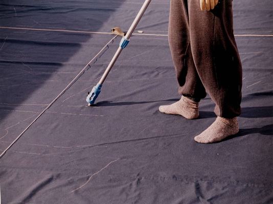 Ese lienzo pertenece, por un lado, a la Naturaleza donde se instala de propuesta efímera a cielo abierto, y por otro, como veremos más adelante, conciernen a ese otro mundo de los sentidos, que es el teatro. Lugar significativo como contenedor de otras artes e igualmente como expresión de otros contenidos artísticos. En ese contexto cabe señalar la referencia al marco o lugar de la ubicación de los lienzos porque es todavía mucho más amplia en expresiones significantes. Así a la plástica artística se une la danza contemporánea, que también interviene en el paisaje. La segunda conlleva sus particulares características, su primer medio de expresión es el cuerpo. También, para integrar y formar un todo en el escenario, se apoya en otros elementos determinados por el especial mundo de los sentidos, bailarines- movimiento, música-sonidos, luces-sombras. Fusión de las Artes, que comparte lo efímero e interesante de pisar unos suelos, meterse en los lienzos para formar parte de ese Arte-Naturaleza.