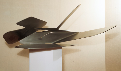 Cuando hacia 1967, Palazuelo empezó a recortar y plegar planos, su obra estaba atravesando un momento biomórfico. En esa geometría biomórfica, los polígonos han redondeado sus ángulos y se han convertido en figuras  de bordes suaves. El resultado de estas obras como Sueño de vuelo  (1977), en la que una serie de planos de bordes redondeados se pliegan expandiendo la superficie  por el espacio, como un insecto abriría sus élitros. Pero, tal vez, donde mejor se aprecia la voluntad cubista es en obras como la titulada Envuento y Atria (1990). Sus esculturas de los años ochenta en adelante, surgen como consecuencia del trabajo de plegar y desplegar planos, de expandir líneas y superficies. Cómo el propio artista ha reconocido, el dibujo es la base de su pintura y escultura. Palazuelo en torno a 1978, realizó una serie de dibujos y pinturas en los que la línea recta se cruzan, formando una especie de trama muy homogénea que se extiende tanto por el papel como por el lienzo, como lo hace la escritura. Por tanto, lo que estamos llamando escultura, es en realidad, dibujos tridimensionales, que han cobrado un cuerpo sólido por medio de grandes chapones de acero y aluminio.