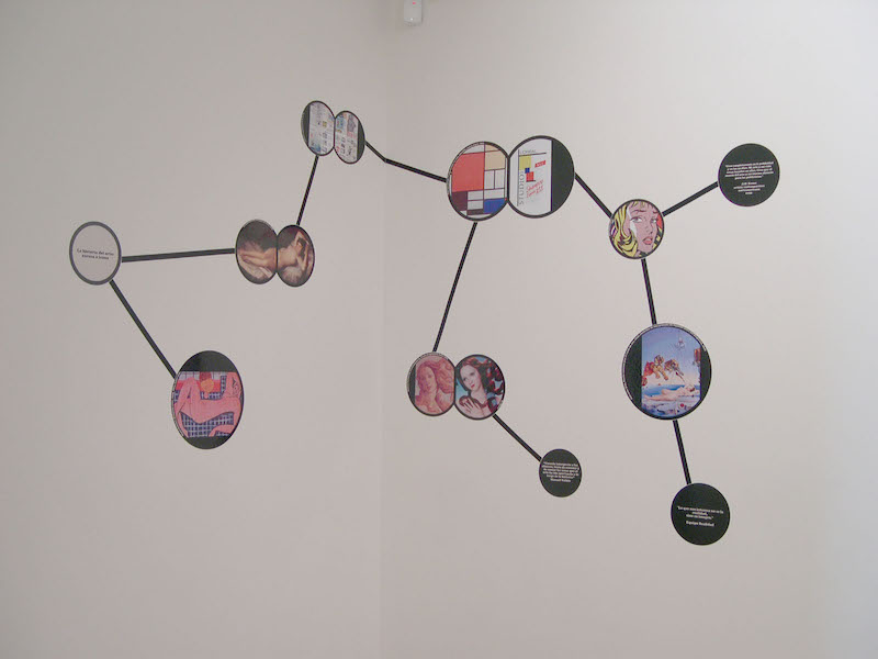 En el año 2007 se inauguró el primer montaje educativo comisariado por el equipo de mediación del museo. El relato expositivo se planteó desde el diálogo entre modernidad y contemporaneidad artística, seleccionándose para ello un conjunto de obras de la colección del museo representativas de ambos momentos. Esta dialéctica se complementaba con una constelación de imágenes que invitaban al visitante a la reflexión sobre las múltiples lecturas que se pueden obtener de las obras exhibidas (Imagen 1). Este planteamiento ofrecía al visitante un amplio abanico de formas de aproximación al arte actual, más allá de los criterios estéticos propios de la institución.