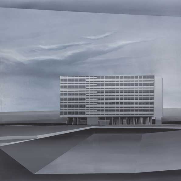 A este no lugar se le añade la deshumanización de la composición. No hay personajes. Renuncia expresamente a la escala humana y hace una referencia expresa al vacío. Explicita un espacio que me resulta más misterioso que inquietante. Un espacio casi metafísico.