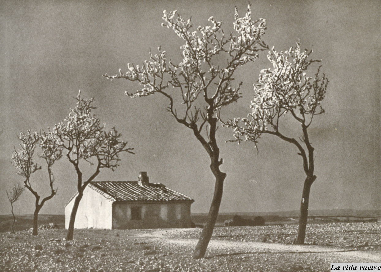 En lo que respecta a la Sociedad Fotográfica de Zaragoza (Romero y Tartón, 1997), ésta vivía un particular momento de esplendor, derivado de los recientes premios recibidos en distintos certámenes de gran prestigio en España, en una temporada especialmente afortunada. Comenzó Luis García Garrabella, a principios de 1952, con el Premio de Honor en el IX Concurso de Honor del Nuevo Club Deportivo de Bilbao, con su fotografía titulada La vida vuelve (fig. 1). Un paisaje de sencilla composición con una pequeña casa de fondo, rodeada por tres almendros en flor.