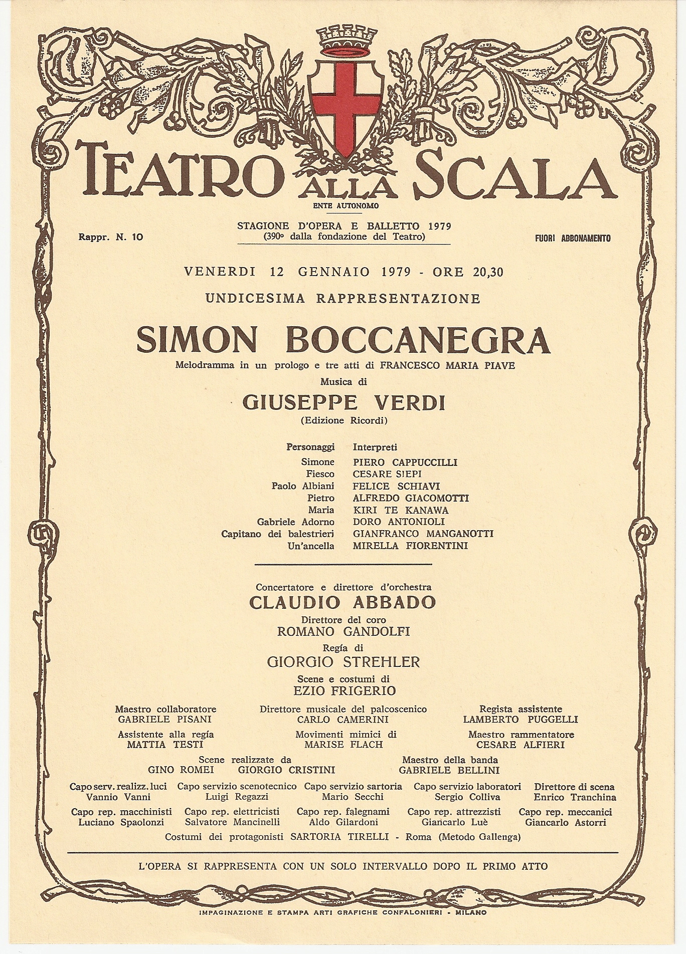 -En 1972 Claudio Abbado dirige la producción scalígera más loada de este título, que edita el sello Foyer, y que  graba en estudio cinco años después para D.G. Todos críticos sin excepción alaban la dirección de Abbado por sonido, color, concepto, pulso, rigor, teatralidad y, fundamentalmente, porque sabe sacar, como los directores de una época ya casi olvidada en el tiempo (Votto, Sabata, Serafin…) lo mejor de cada uno de los cantantes del elenco. Capucilli, que no contaba con las simpatías de Celleti, sale más airoso que de costumbre en los comentarios que el crítico hace de esta ejecución. Su voz, poco fonográfica y más teatral, alcanza aquí su mejor grabación de estudio. Como Abbado, se muestra más efectista en el 72, por razones obvias de la inmediatez del vivo. Pero en ambas prestaciones se presenta sensible, elegante, sublime en el fraseo largo, con un legato de excepción y una expresividad conmovedora. Ghiaurov, más escolástico en estudio que en el 72, firma no obstante en ambas ocasiones un Fiesco a la altura de los mejores: sus cartas son una voz llena, aterciopelada, con un importante metal, nunca hueca, potente y bien proyectada en sala, características  que le confieren, junto a la variedad de acentos que Abbado saca de él, una autoridad que ya no se ha vuelto escuchar en escena. Tras él, la nada. Mirilla Freni, perfecta, por voz, color, técnica y entrega: la hermana de leche de Pavarotti es sin duda la mejor Amelia en disco. Schiavi y Van Dam sirven  al Paolo en ambas versiones: mayor matiz del segundo pero canto más italiano del primero. En el 72 Gabriele era el recientemente desaparecido Gianni Raimondi. En una noche en estado de gracia, este tenor de hermosísimo timbre, solo superado quizás por el de Jaime Aragall, canta con un slancio, con una generosidad, con una gallardía tales que, incluso a pesar de su típica generalidad interpretativa, cosecha un éxito clamoroso en una época en la que todavía se iba al teatro a escuchar la voz por encima del espectáculo en su conjunto. Gloria a la que no es ajeno el Carreras de los 70: elocuente, extrovertido, fraseador extraordinario, cuidador de la expresión y la palabra a la Di Stefano (el tenor, no el futbolista) y poseedor de un instrumento netamente lírico de buena anchura y extensión, brinda todavía en el 77, antes de la precipitada quema en los 80 de sus por naturaleza privilegiados medios, un personaje en el que las lagunas técnicas apenas se insinúan. Versión, en definitiva, sobre todo la de estudio del 77, que podemos considerar como la referencia moderna de esta ópera.