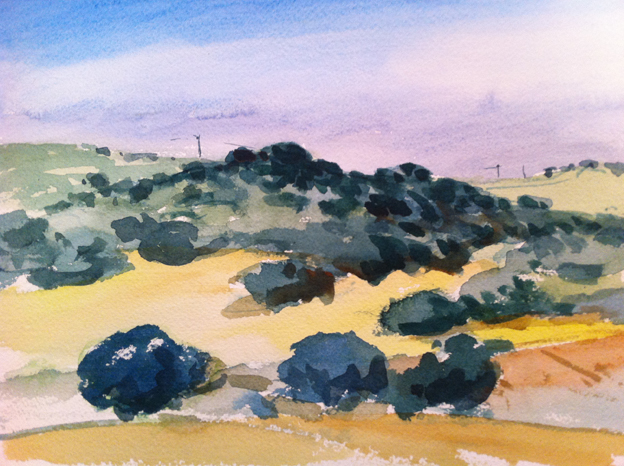 Acuarelas que ha convertido en su cuaderno de viaje, en su diario, en su forma de entender el fin de su pintura. Allá quedan algo lejanos -que no olvidados- sus Paisaje Viajados en los que la visión era mas fugaz. Ahora podríamos hablar de paisajes encontrados. Esos que no se esperan o que habiéndolos ya visto no habían elegido todavía al artista para que los pintase.