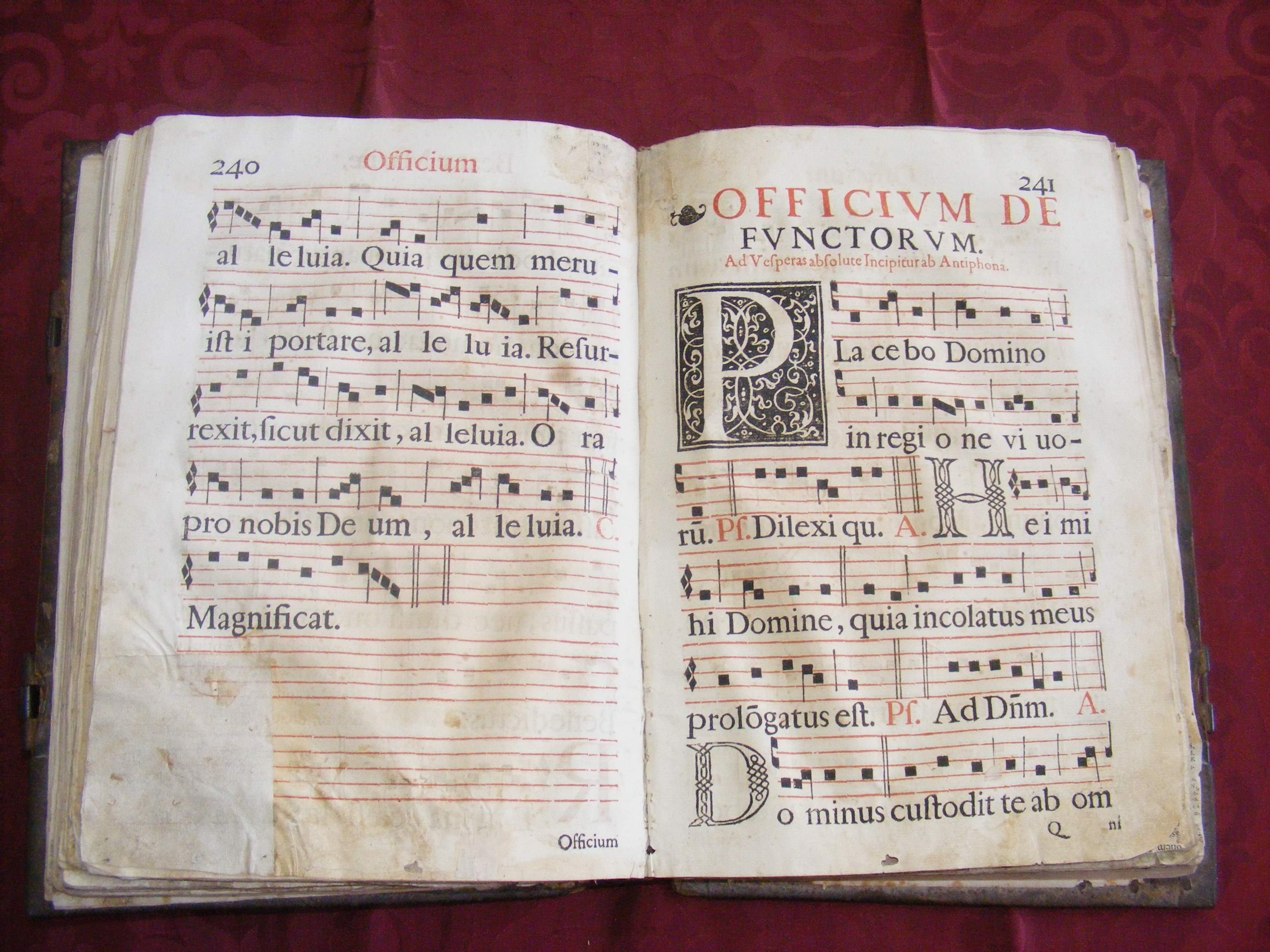 Fruto de este trabajo todavía inconcluso es este artículo cuyo único objetivo es dar a conocer tres de los cinco libros litúrgico-musicales que se propuso realizar el arzobispo de Zaragoza D. Alfonso Gregorio a finales del siglo XVI y que se han conservado en el convento borjano de las clarisas. Me estoy refiriendo al Antiphonarium de Sanctis (1596), al Antiphonarium de Tempore (1598) y al Missarum de Sanctis (1598), todos ellos realizados en la tipografía de Pascual Pérez, “uno más de los numerosos y excelentes maestros impresores que trabajaban activamente en nuestra ciudad a finales del s. XVI” (Gregorio 1996a: 18), y que hasta el trabajo del profesor Ángel San Vicente resultaba casi desconocido. (San Vicente 2003: 118-120).