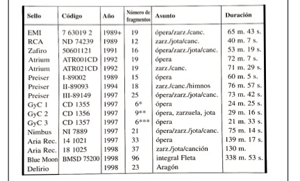 Figura 1- Grabaciones remasterizadas de Miguel Fleta hasta 1998 (Solsona, 1998b:134).